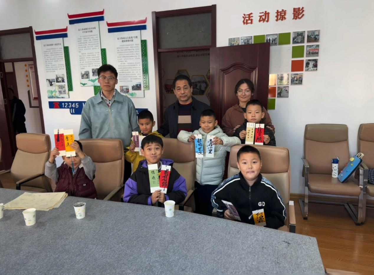 活动尾声,师生共同挥毫,为每位孩子创作了个性化励志书签与姓名卡。“勤学善思”“志存高远”等寄语跃然纸上,既寄托了对孩子们的美好祝愿,也让他们收获了一份独具意义的书法纪念。