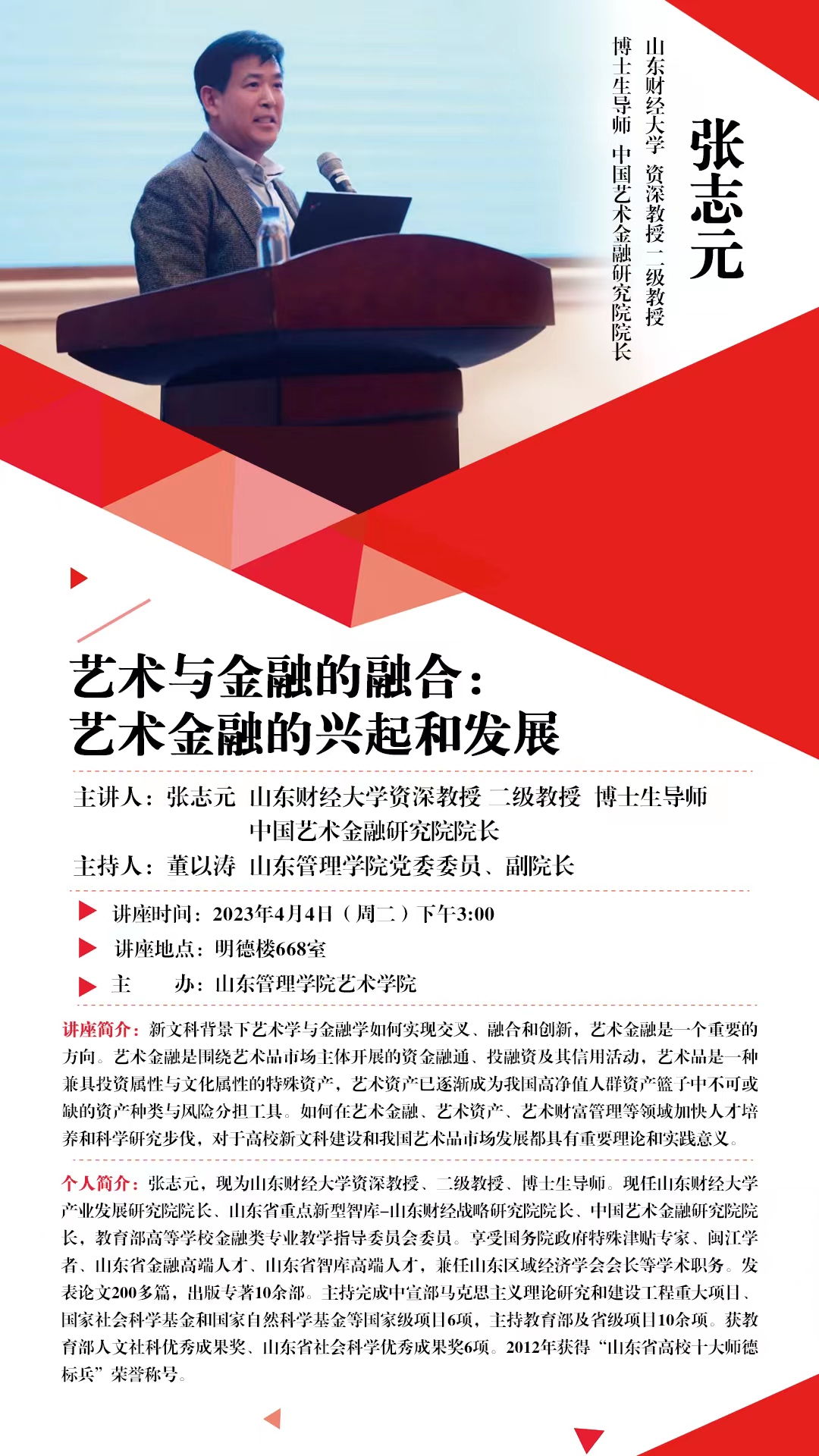 上一条:山东管理学院举办“艺术与金融的融合:艺术金融的兴起和发展"学术讲座 下一条:艺术学院党总支理论学习中心组(扩大)会议