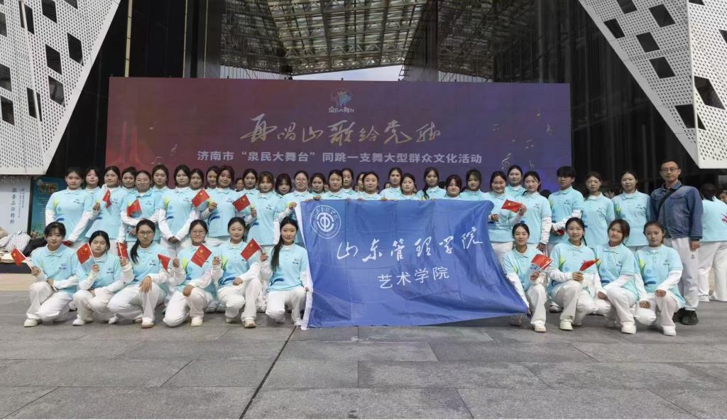 活动现场,我院师生身着统一服饰,以整齐划一的舞蹈动作、饱满的精神面貌,融入千人舞阵。从队形变换到情感表达,每一个细节都展现出山管学子的凝聚力与艺术素养,在秋日泉城的画卷中,成为一抹亮眼的青春底色。