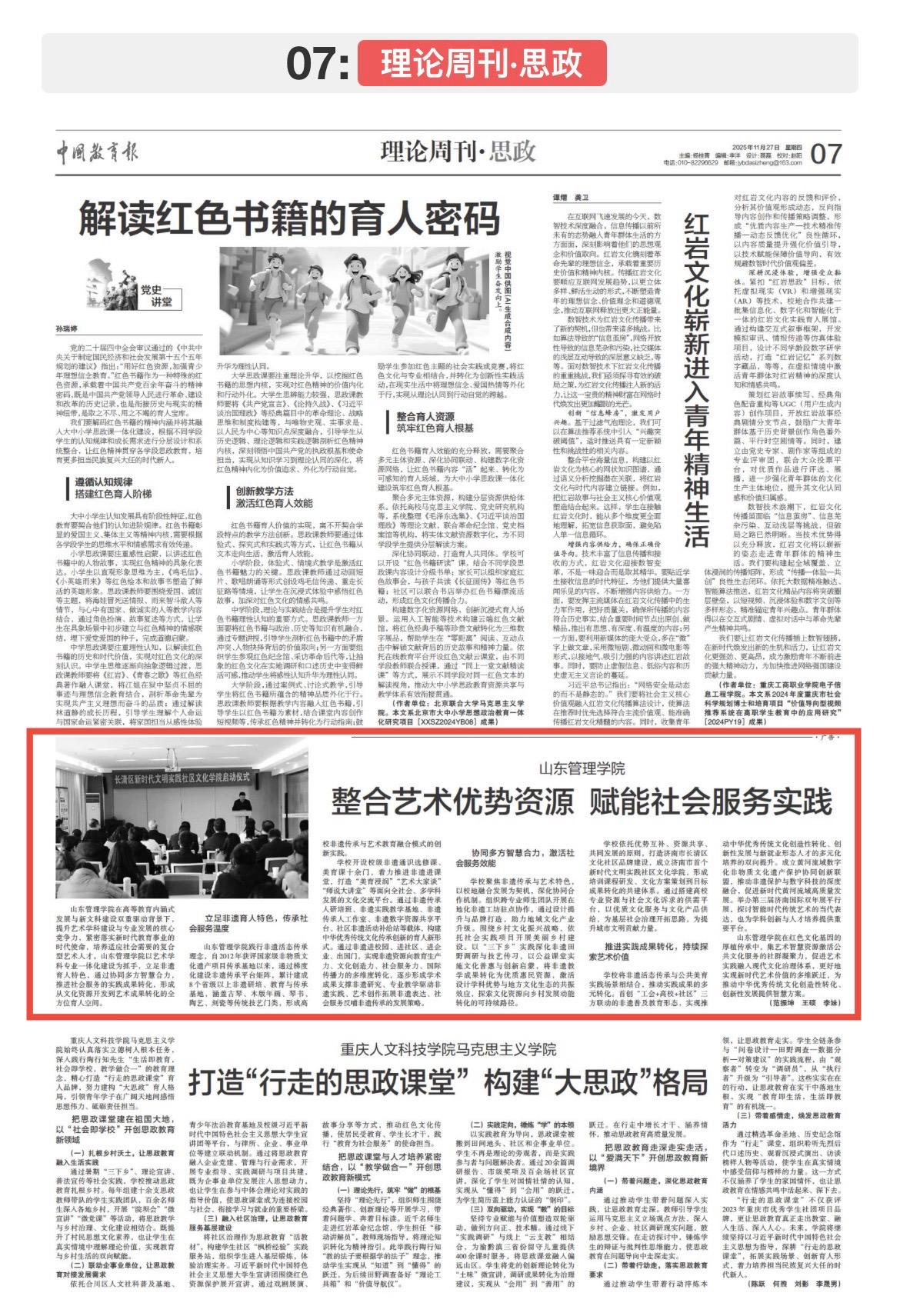 11月27日,《中国教育报》专题报道学校艺术教育实践成果《整合艺术优势资源 赋能社会服务实践》。
