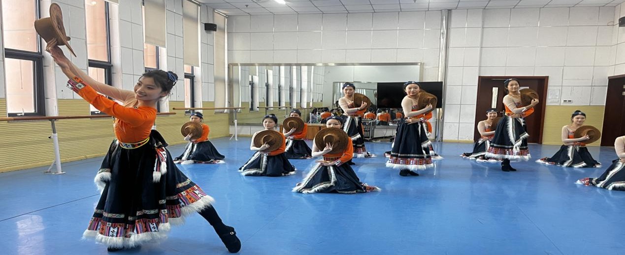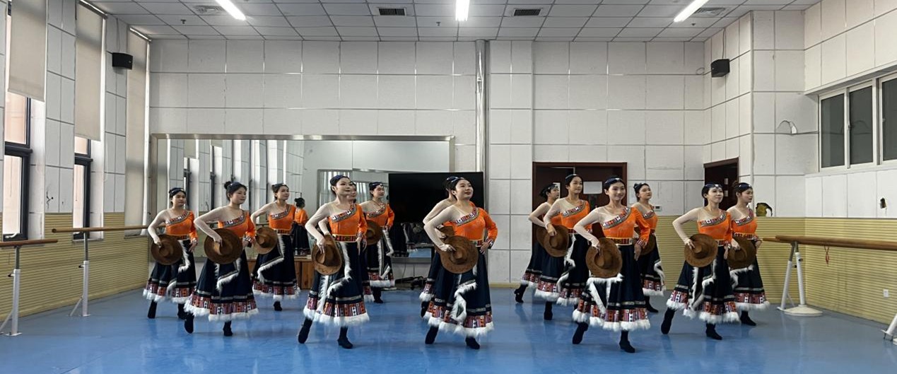 最终,一支优美的《次仁拉索》将整个展演推上高潮,橙黑配色的藏族舞蹈服饰搭配棕色圆帽整齐列队,同学们用真挚饱满的笑容、整齐划一的动作,彰显了扎实的集体协作与深厚的课程教学成果。
