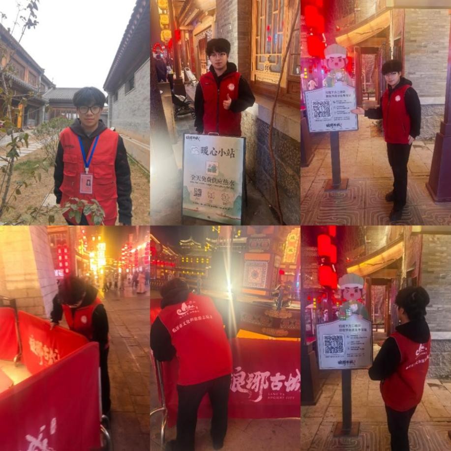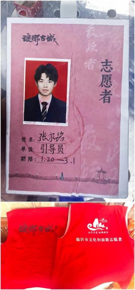 2024级艺术与科技专业1班的张家铭,投身临沂市琅琊古城文旅志愿服务,负责景区秩序维护、游客咨询引导等工作,面对不同需求的游客学会换位思考,综合能力提升的同时,深化了对家乡的文化认同与自豪感。